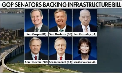 I would label these very dishonest, trillion dollar debtor, big spender GOP members as the real ‘Purple RINOs’ (Mixed up Red and Blue GOP), because they very well know that this Biden Democrat debt harvesting, deficit booming deceptive Infrastructure Bill will be a very disastrous, huge burden to We, The People, most especially to our Generation XYZ children!