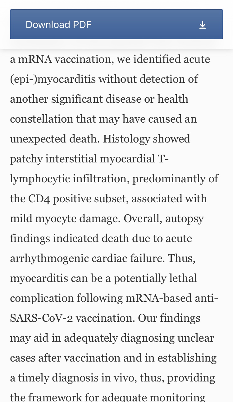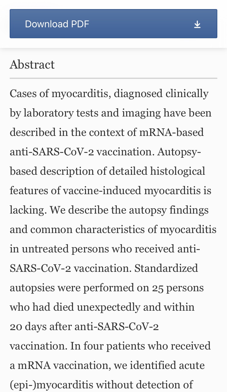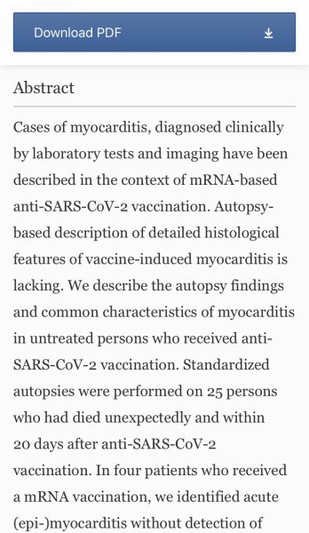 “Thus, myocarditis can be a potentially lethal complication following mRNA-based anti-SARS-CoV-2 vaccination.”