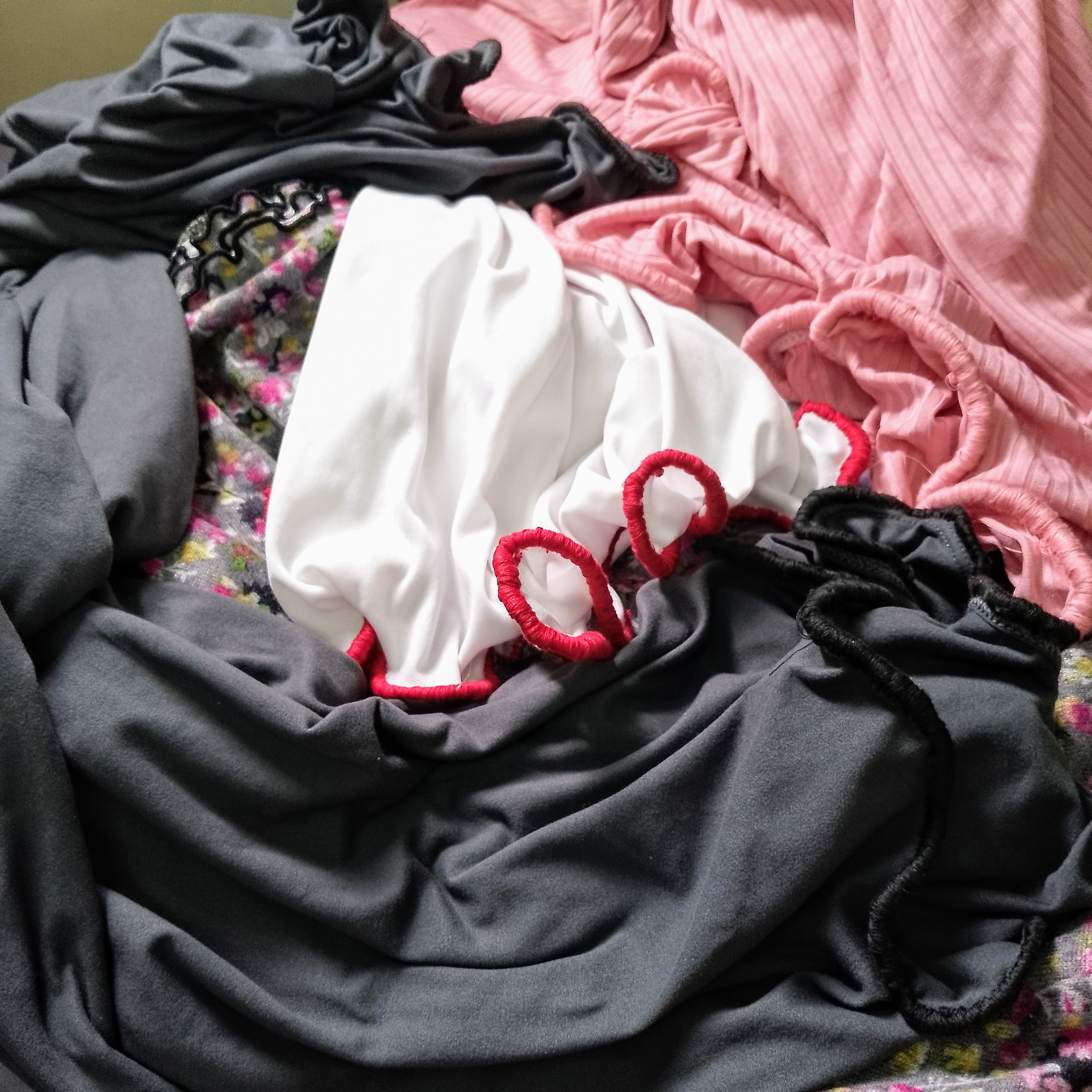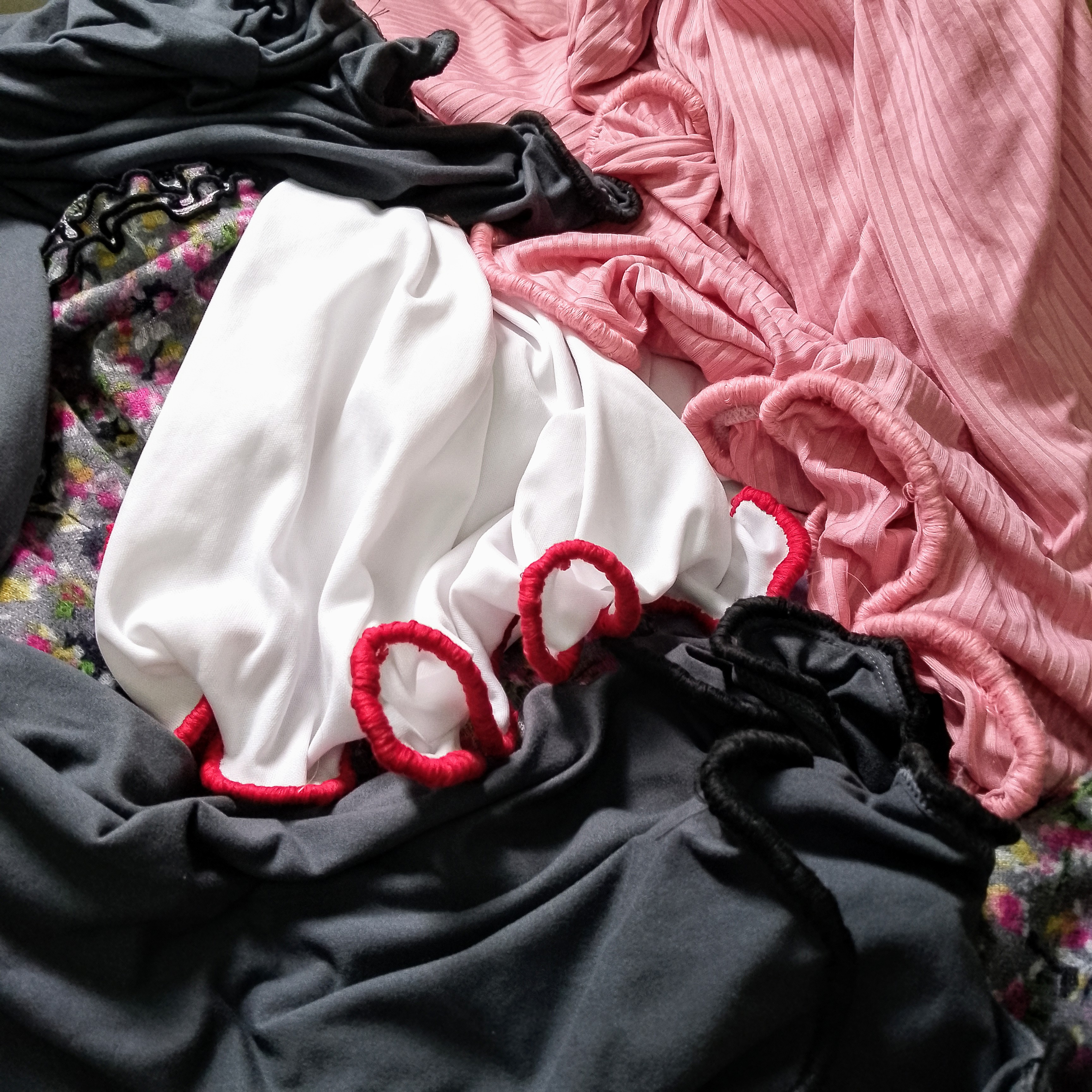 These are some of my own kind of Lettuce Hems I call “Lettuce Edges”. Not just on bottom hemlines, any hole edge of an outfit actually.🤭