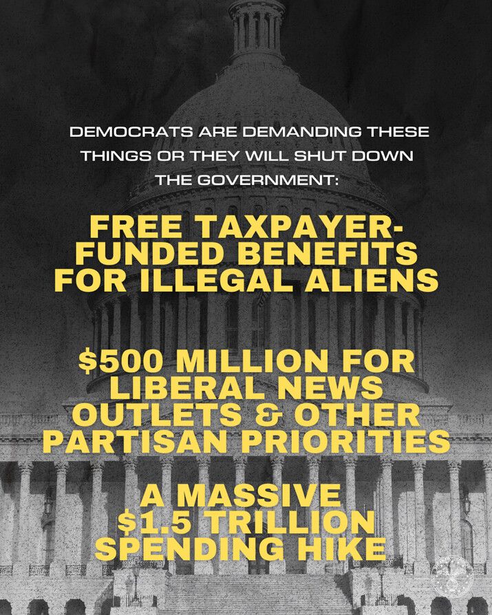 “… They are threatening to shut down the Government of the United States unless they can have over $1 Trillion Dollars in new spending to continue free healthcare for Illegal Aliens (A monumental cost!), force Taxpayers to fund Transgender surgery for minors, have dead people on the Medicaid roles, allow Illegal Alien Criminals to steal Billions of Dollars in American Taxpayer Benefits, try to force our Country to again open our Borders to Criminals and to the World, allow men to play in women’s sports, and essentially create Transgender operations for everybody. …” – President Donald Trump